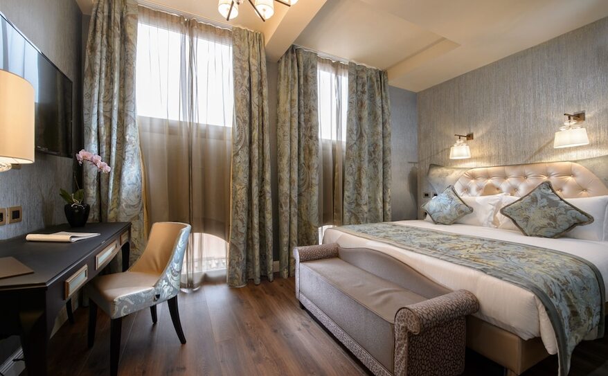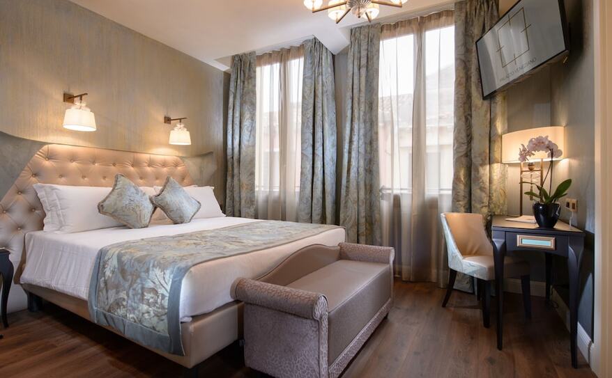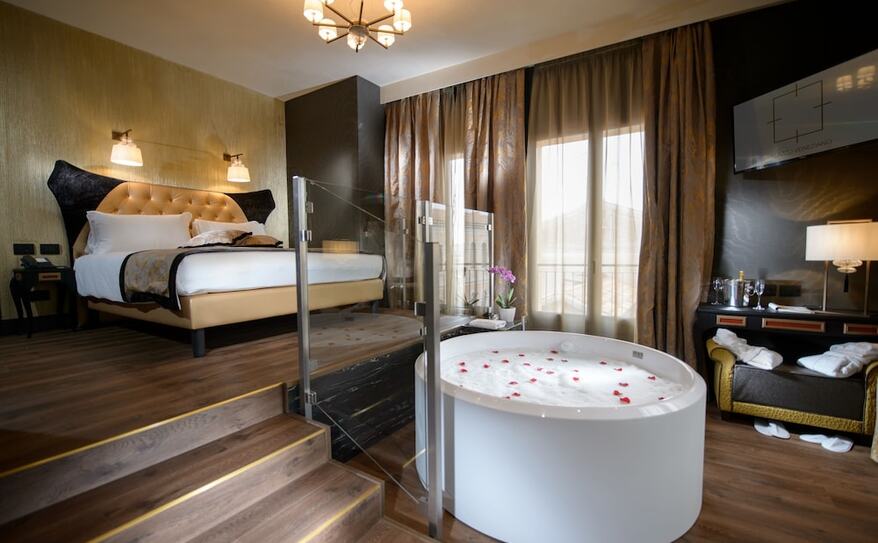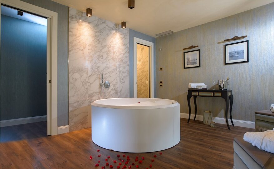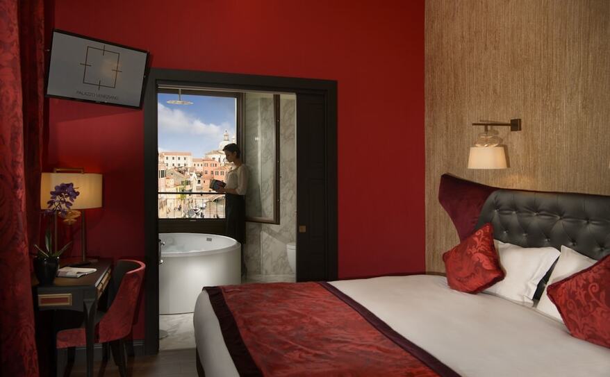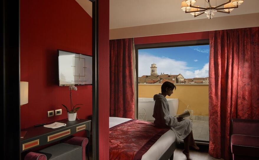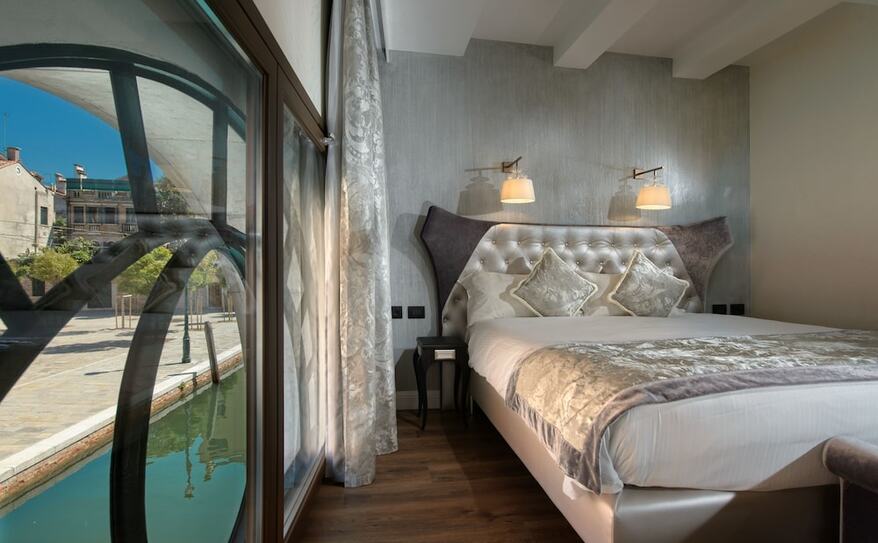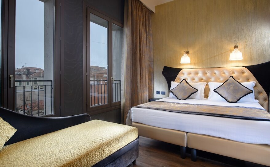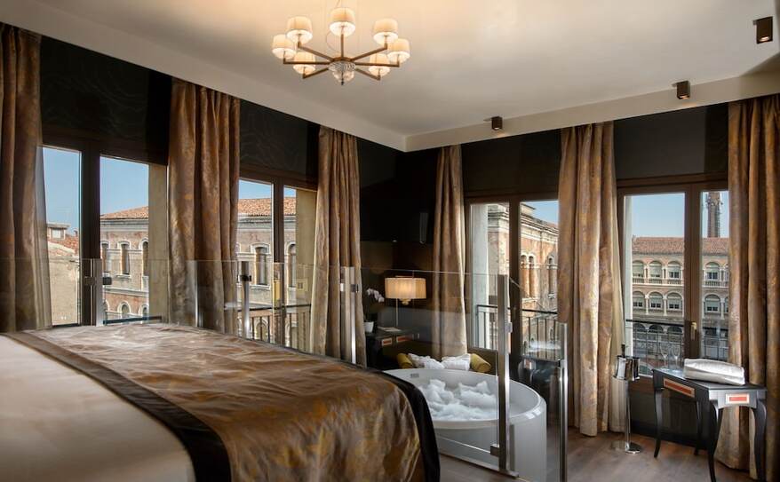 Palazzo Veneziano is a luxurious hotel set along Venice’s stunning lagoon, offering a blend of modern comfort and classic Venetian charm. Its elegant rooms and suites, some with private hot tubs and views of the canals, provide a serene escape in the heart of the city. The hotel is conveniently located near the ferry stop, making it easy to explore iconic attractions like St. Mark’s Square and the Rialto Bridge. With its refined design, excellent service, and tranquil atmosphere, Palazzo Veneziano offers a perfect base for discovering the magic of Venice.