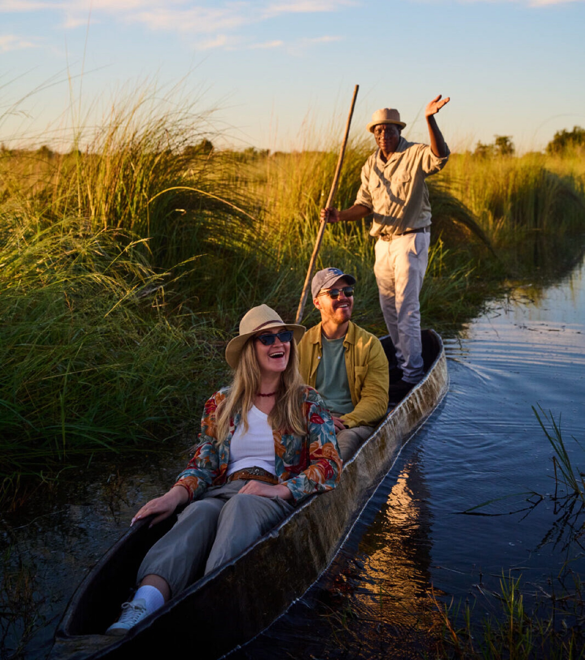 Tucked away on a remote island in Botswana’s iconic Okavango Delta, Camp Okavango offers a unique, eco-sensitive safari experience surrounded entirely by water. Intimate, immersive, and completely disconnected from the outside world, this tranquil retreat brings guests closer to nature through mokoro excursions, boat safaris, and guided bush walks—with no roads, no vehicles, and no distractions.