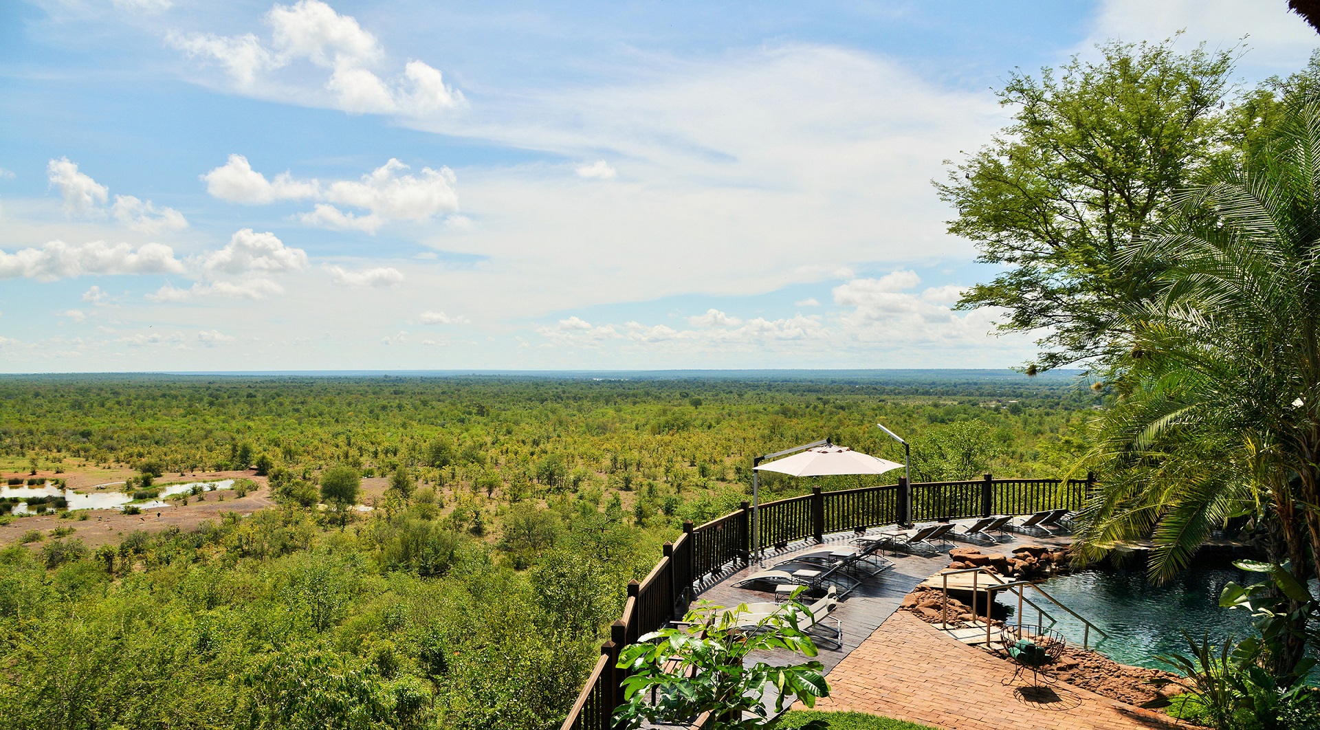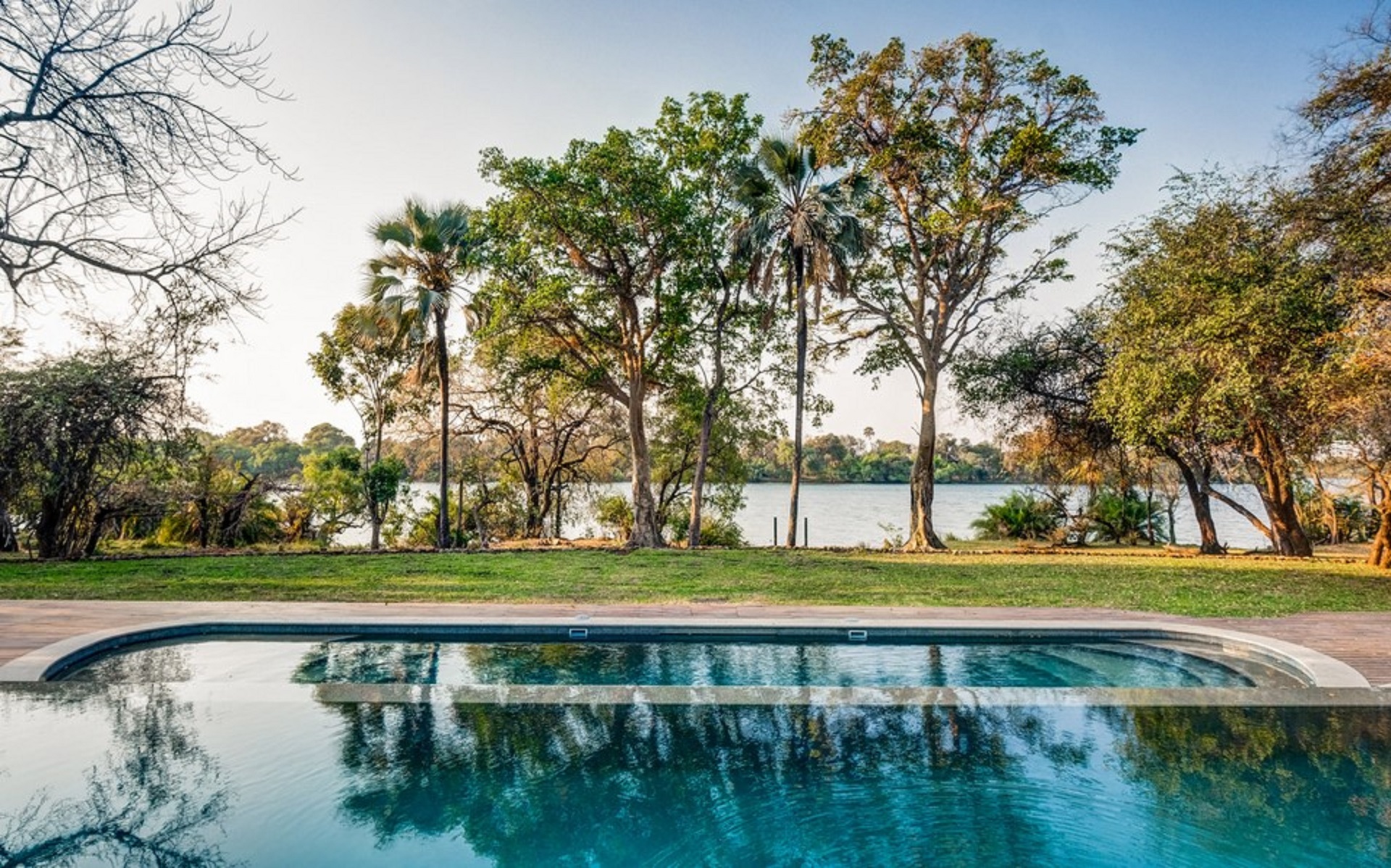 Ideally Located Upstream of the Majestic Victoria Falls - so close, in fact, that on a clear, quiet day you can hear the thunder and see the spray of the mighty waterfall from your room.