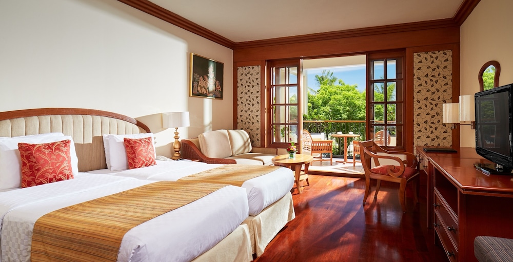Ayodya Resort Bali is a stunning beachfront resort located in Nusa Dua, known for its serene atmosphere and traditional Balinese architecture. Surrounded by lush gardens and offering direct access to a pristine white-sand beach, the resort features a variety of accommodations, from luxurious rooms to spacious villas. Guests can enjoy a range of amenities, including multiple swimming pools, a spa, and several dining options that showcase both local and international cuisine. With its blend of relaxation and cultural experiences, Ayodya Resort Bali provides an idyllic getaway for travelers seeking tranquility and beauty in Bali.