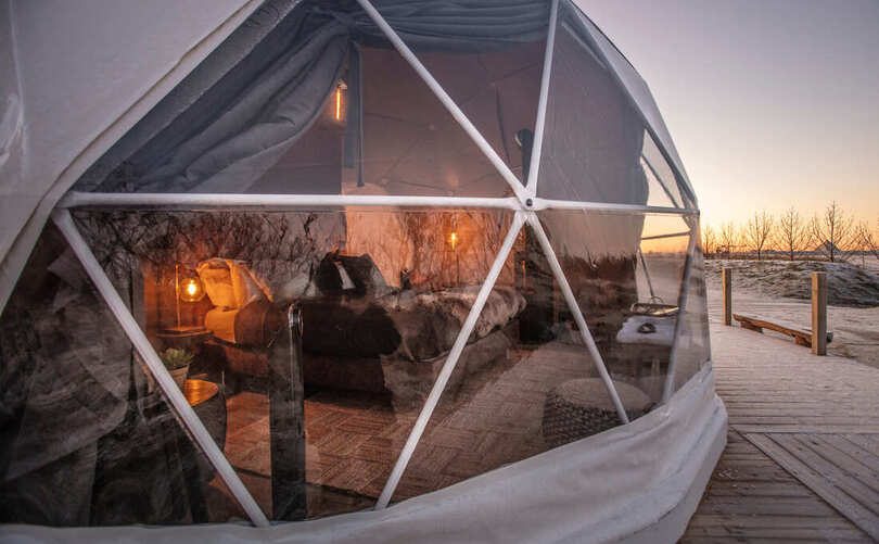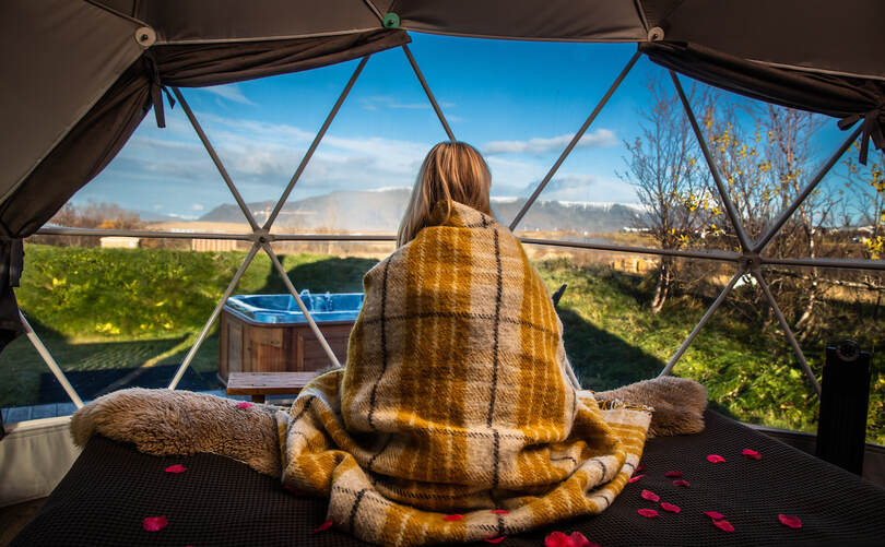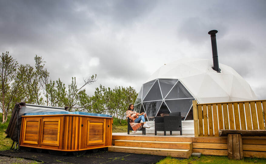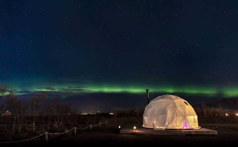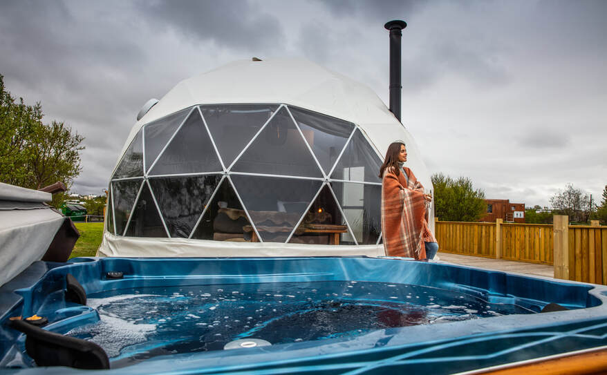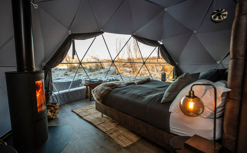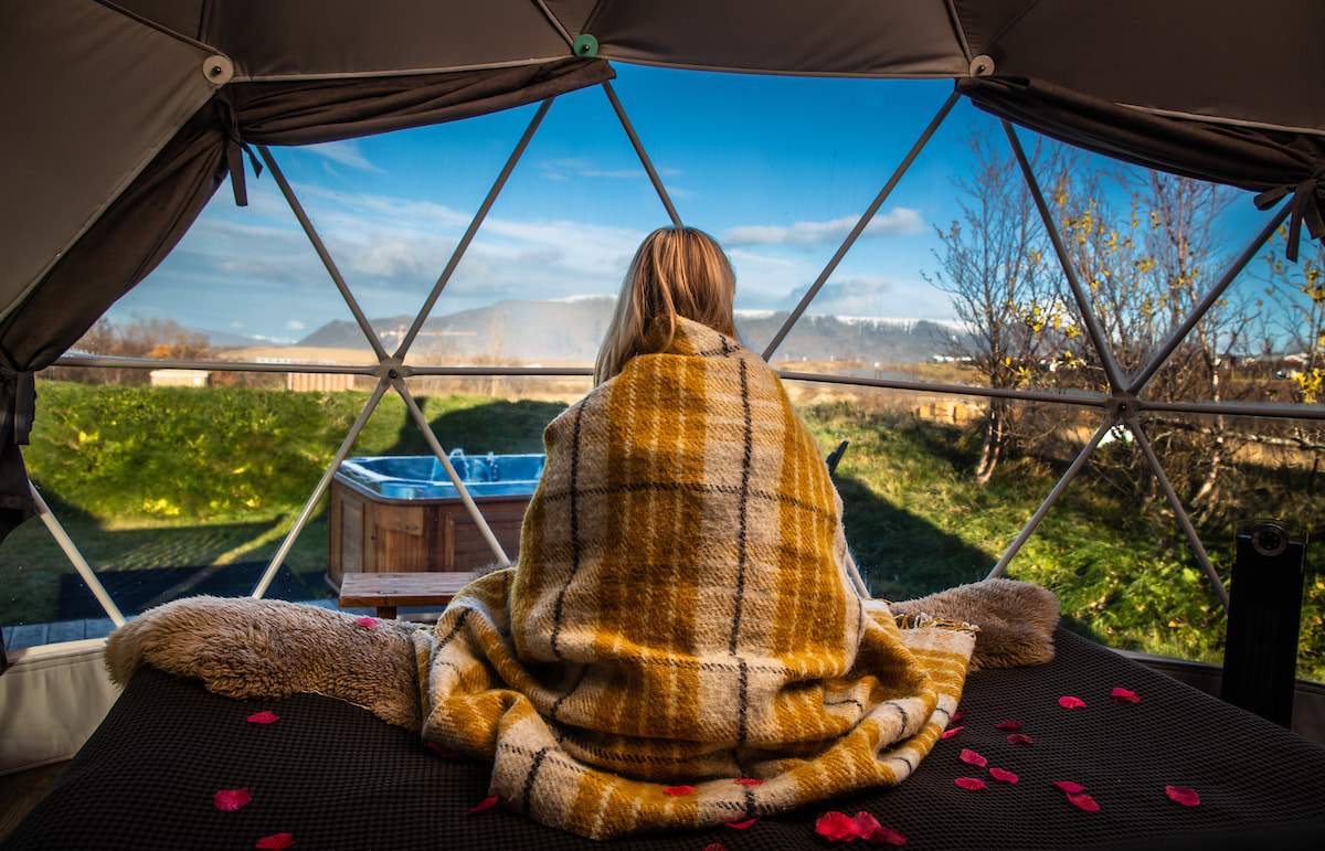 Enjoy spectacular nature from the comfort of a cozy Domes with a soft king size bed covered in sheepskins, a burning fireplace. Marvel at the dancing northern lights and starry skies through the large windows, with Mt. Esja, the queen of Reykjavík’s mountain range, providing a stunning and often snowcapped backdrop to the north.